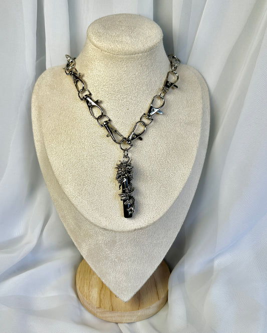 Silver Gothic Metal Clasp Choker Necklace - Dragon Sword
