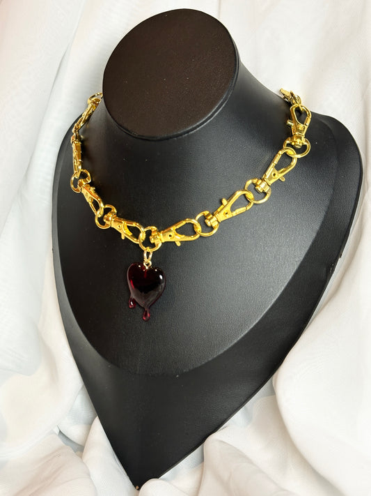 Gold Gothic Metal Clasp Choker Necklace - Bleeding Heart