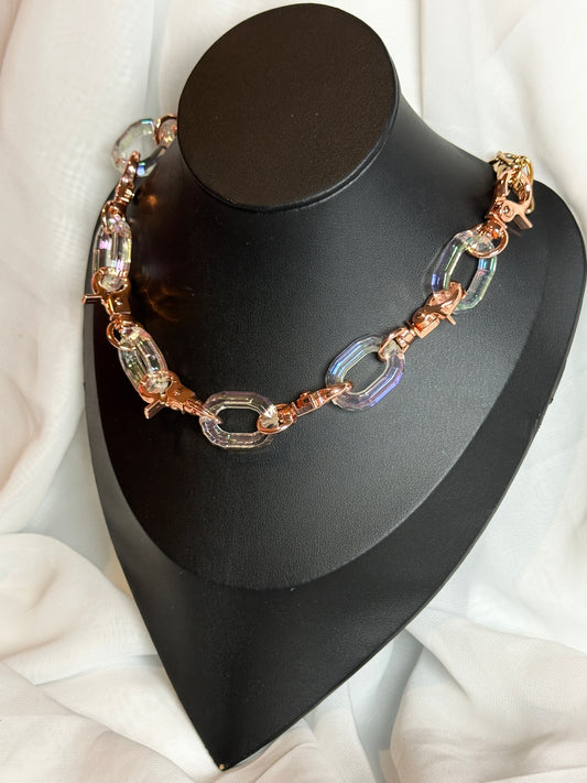 Chunky Rose Gold Gothic Metal Clasp Choker Necklace - Transparent Holographic