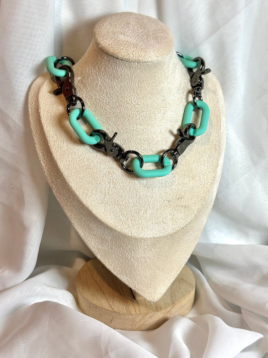 X Large Chunky Gothic Metal Clasp Choker Necklace - Matte Seafoam
