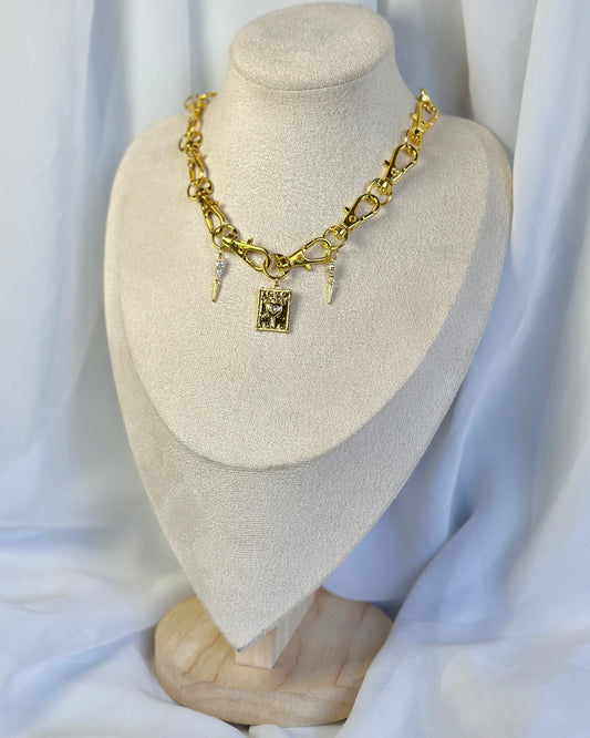 Gold Gothic Metal Clasp Choker Necklace - Three of Swords