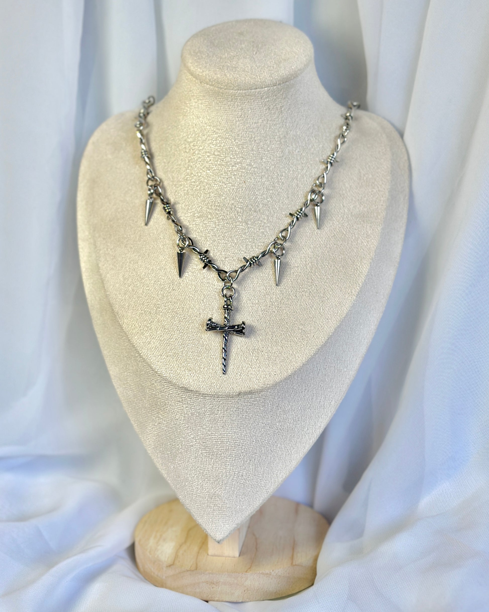 Silver Barbed Wire Gothic Cross Neckalce